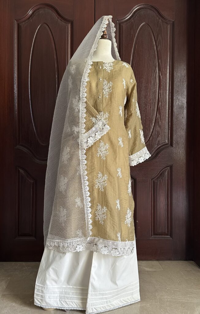 Golden Elegance Hand-Embroidered 3-Piece Set